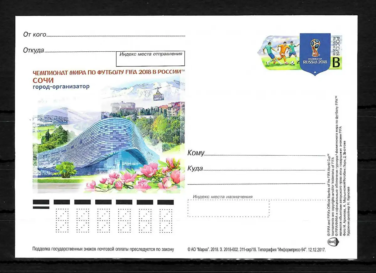 Russland: 2018 Fußball WM: Austragungsort: Sotschi, Ganzsache **