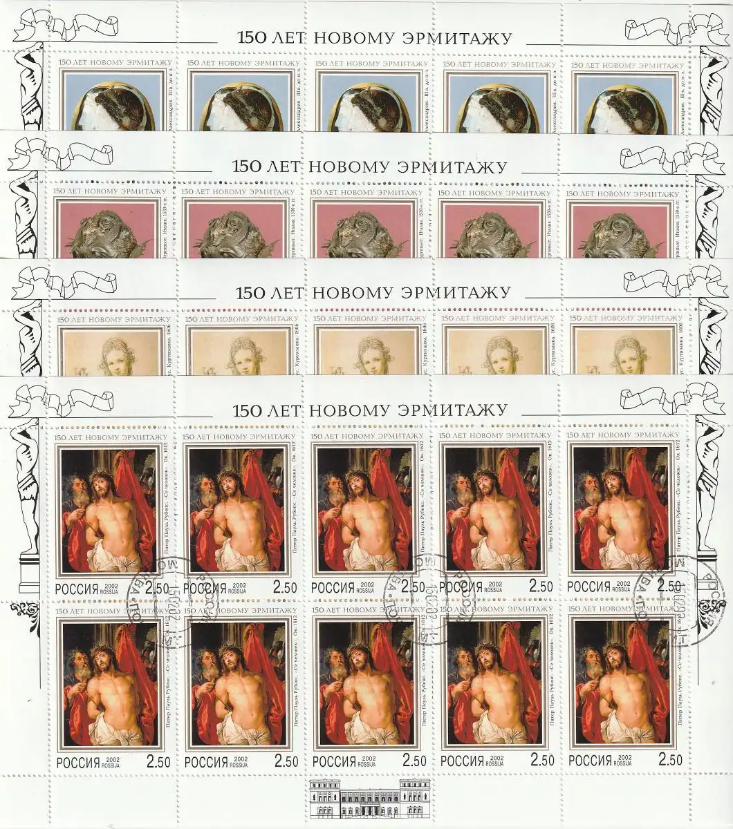 Russland: Gemälde der Eremitage, 4 Kleinbogen gest.