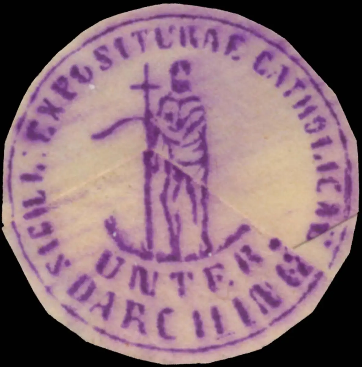 Kirche, Religion, Briefsiegelstempel, Größe/Zustand: 3 , beschädigt, Original Verschluss-Siegelmarke aus Papier welche früher von Behörden, Firmen etc. zum Versiegeln der Briefe benutzt wurden