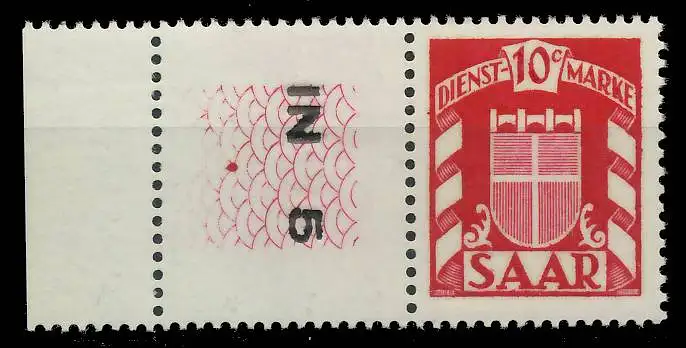 10 C Wert aus der Dienstmarken-Ausgabe Wappen des Saarlandes, anhängendes Leerfeld mit IN5
