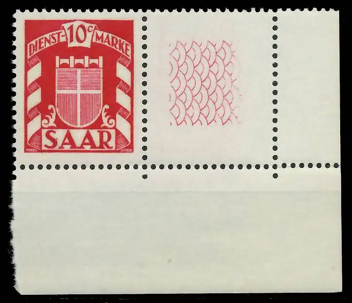 10 C Wert aus der Dienstmarken-Ausgabe Wappen des Saarlandes, mit anhängendem Leerfeld rechts