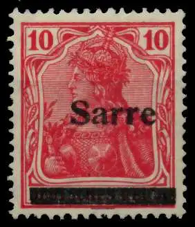10 Pfg, Freimarken Deutsches Reich, Germania, mit Aufdruck Sarre, Aufdrucktype III