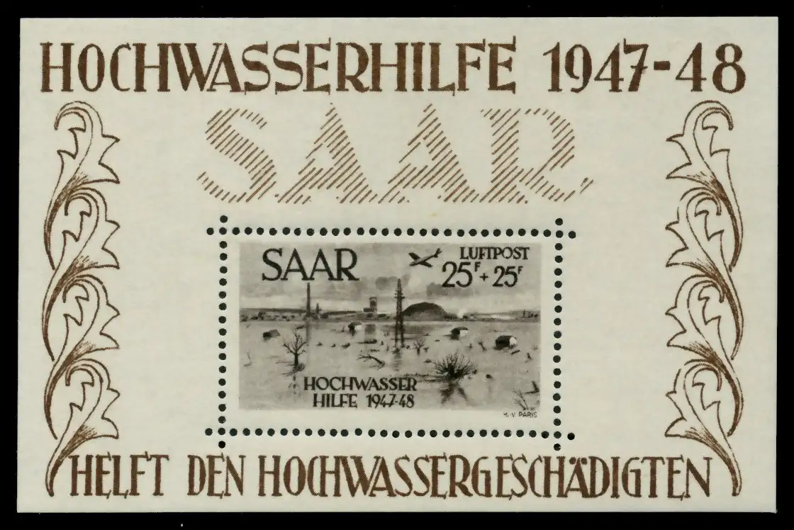 Blockausgabe Hochwasserhilfe von 1948 (Flugpostmarke), einwandfrei