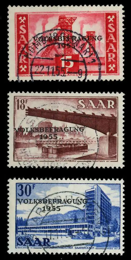 SAARLAND 1955 Nr 362-364 zentrisch gestempelt 79DD42