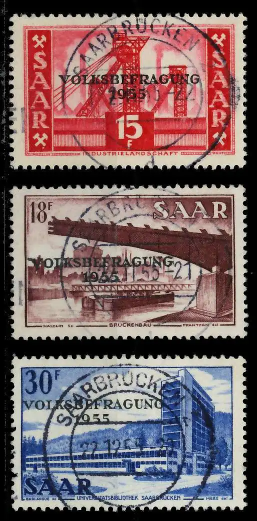 SAARLAND 1955 Nr 362-364 zentrisch gestempelt 79DD46