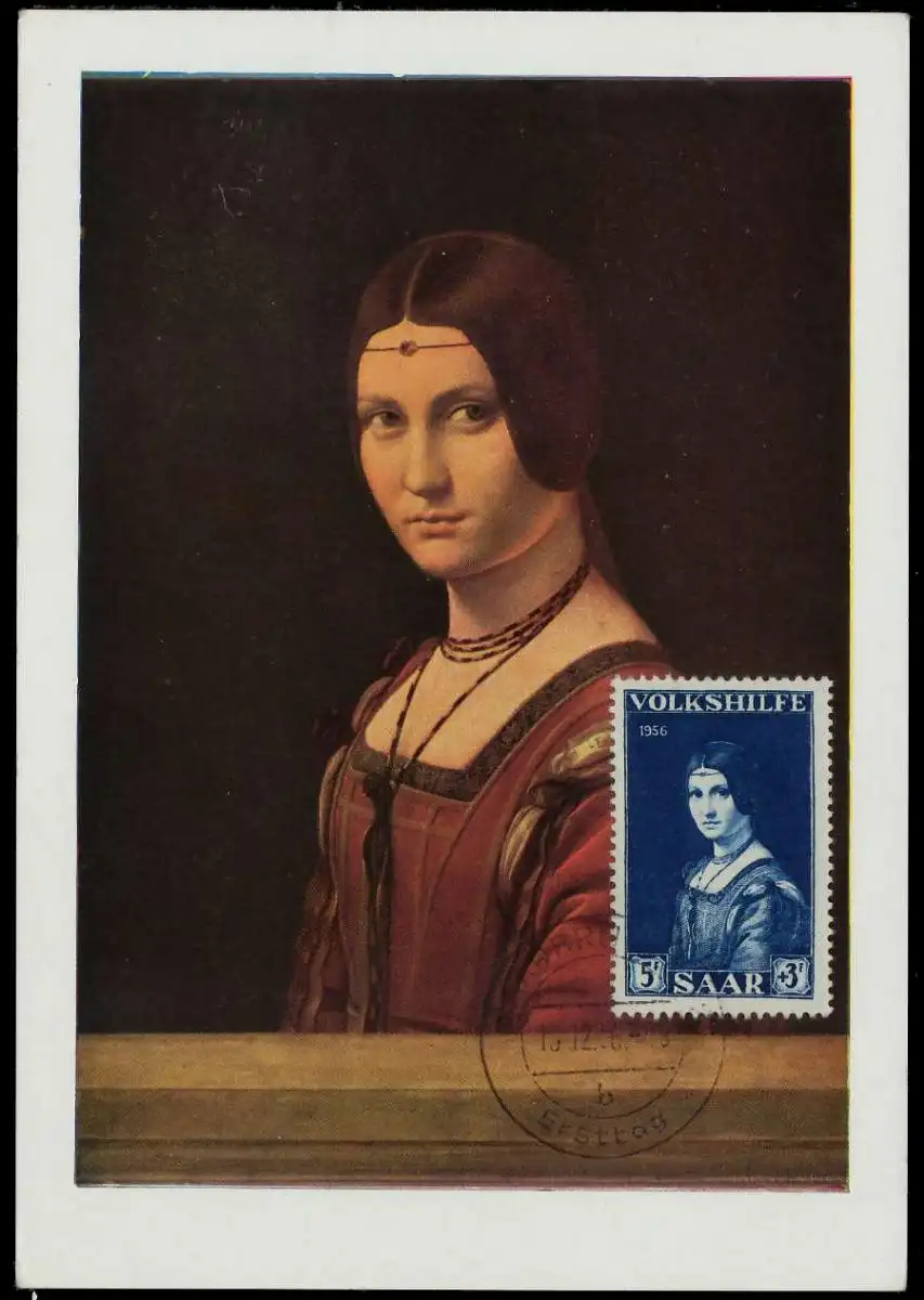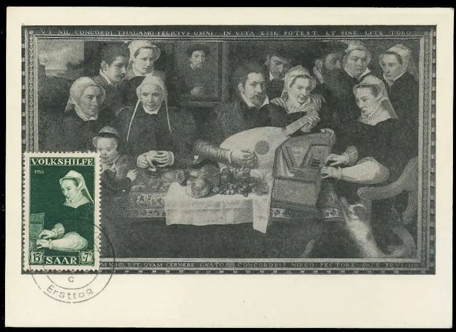 Ausgabe Volkshilfe 1956 auf Maximum-Karten. Es handelt sich um eine Beispielabbildung, die Position der Marken auf den Karten entspricht nicht der Abbildung