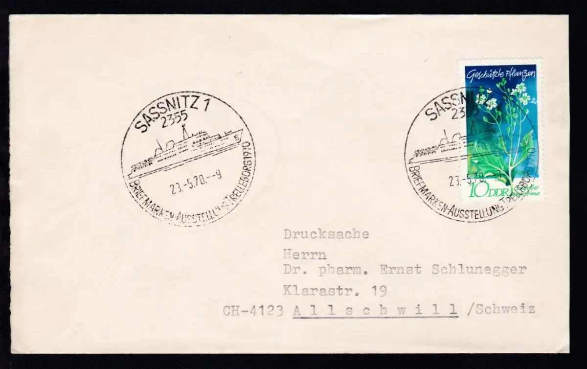 SASSNITZ 1 2355 BRIEFMARKENAUSSTELLUNG TRELLEBORG 1990 23.5.70 auf Brief