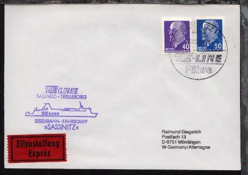 SASSNITZ 1 FÄHRE TS-LINE 12.06.90 + Cachet FS Sassnitz auf Eil-Bf.