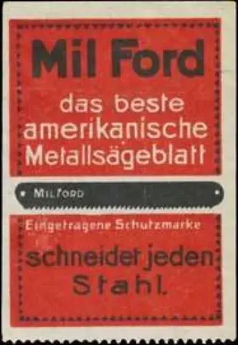 Mil Ford das beste amerikanische Metallsägeblatt schneidet jeden Stahl, Größe/Zustand: 6x4 , guter Zustand, Original alte Reklamemarke die seinerzeit für die Werbung benutzt wurde