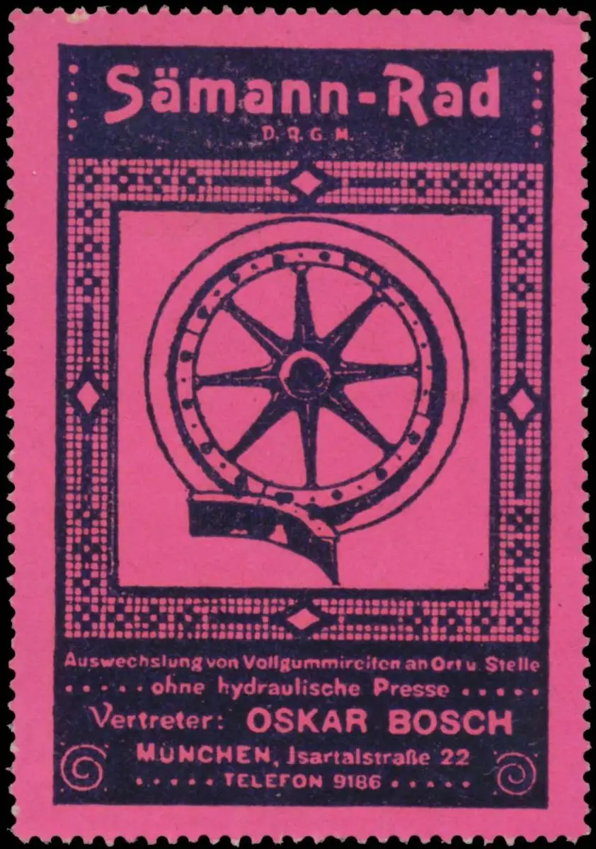 Vollgummireifen, Vertretung, Isartalstraße 22, Größe/Zustand: 7x5 , guter Zustand, Original alte Reklamemarke die seinerzeit für die Werbung benutzt wurde