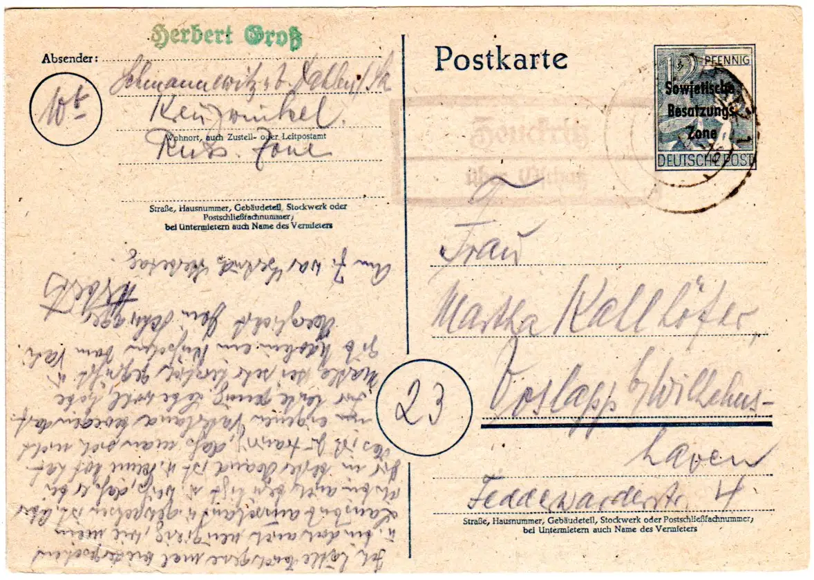 SBZ 1948, Landpost Stempel ZEUCKRITZ über Oschatz auf 12 Pf. Ganzsache