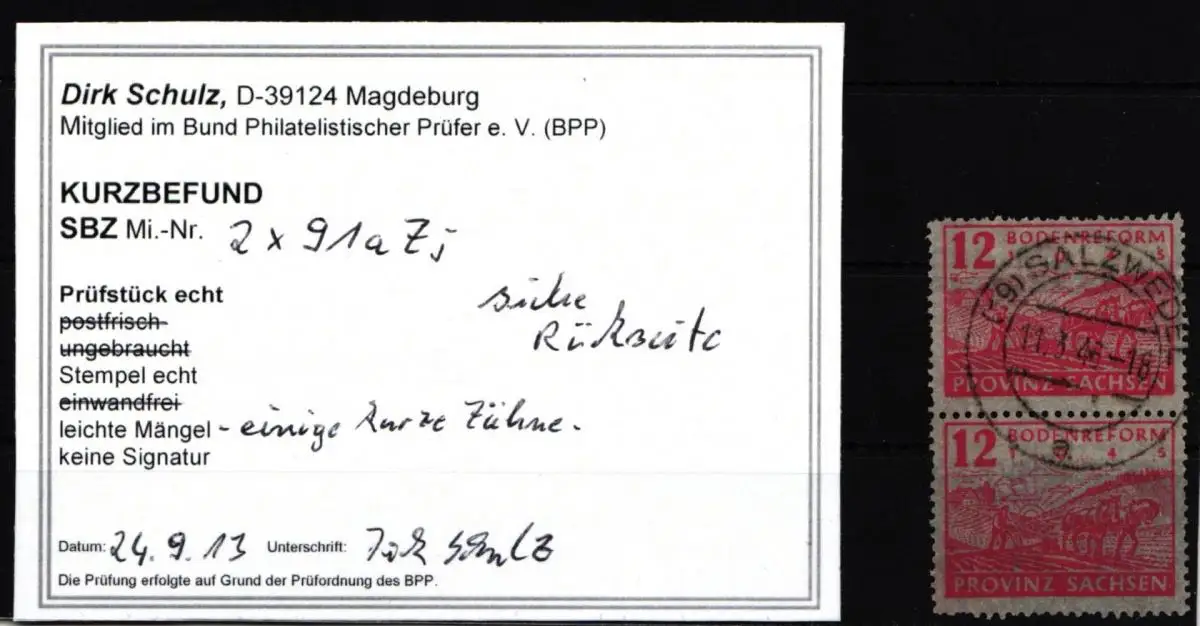 SBZ 91 aZ gestempelt Kurzbefund Schulz BPP #JF244