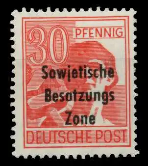 30 Pfg Wert aus der 2. Kontrollratsausgabe mit 3-zeiligem Aufdruck "Sowjetische Besatzungs Zone"