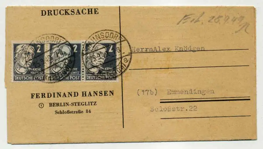 2 Pfg Wert aus der Freimarkenausgabe Persönlichkeiten (Köpfe), als Mef auf Drucksache, inseitig Preisliste
