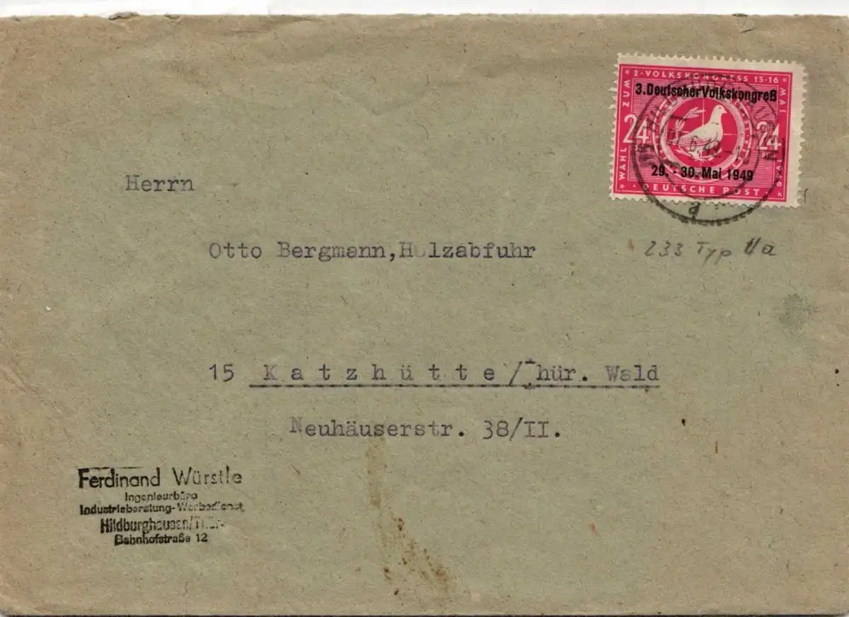 SBZ Allg. Ausg. 233 gestempelt Brief Inland #NQ716