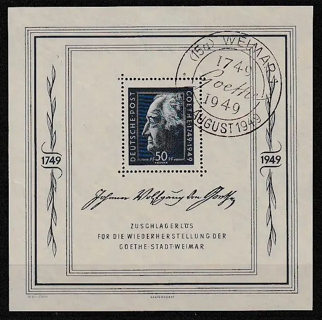 SBZ: Goetheblock , Sonderstempel Weimar, bestgeprüft