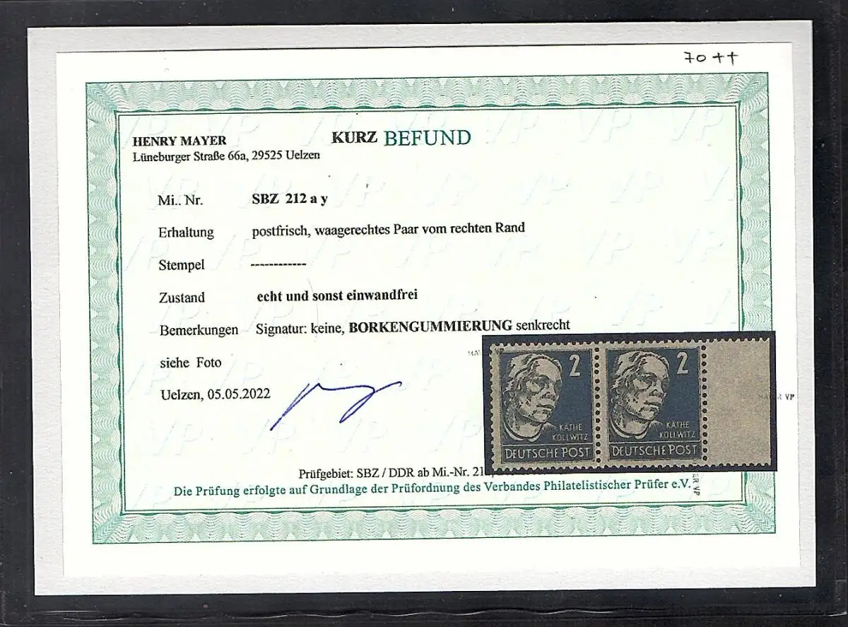 SBZ., Mi.-Nr. 212 ay postfrisch waagerechtes Paar, Befund Mayer