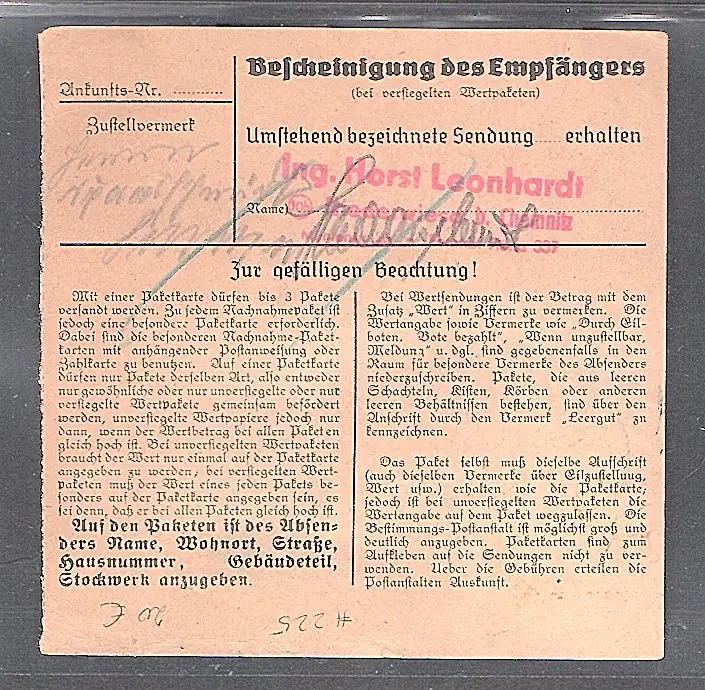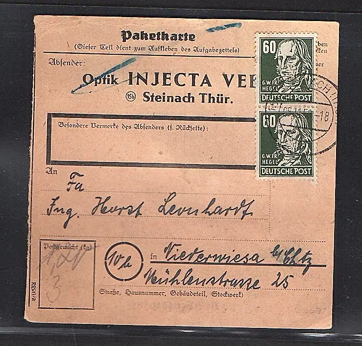 SBZ, Mi.-Nr. 225 MeF auf Paketkarte.