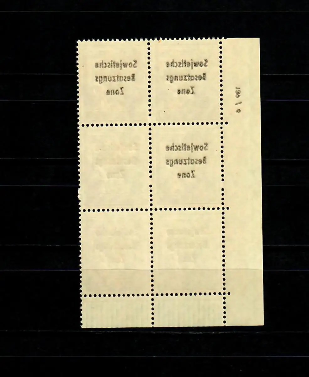 SBZ MiNr. 186 DV im 6er Block vom Eckrand mit Druckvermerk