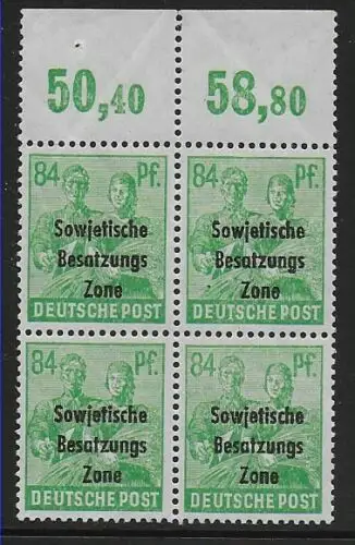 SBZ: MiNr. 197 PORd gz, postfrisch, ** Viererblock Oberrand