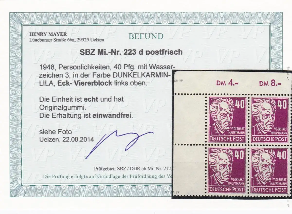 SBZ: MiNr. 223 d, postfrisch, ** Eckrand Viererblock