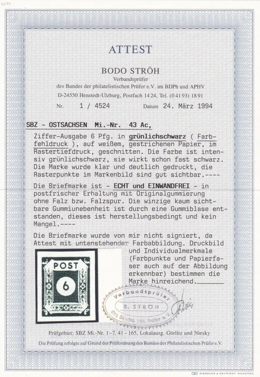 SBZ: MiNr. 43 Ac, ungezähnt, Fehldruck, postfrisch, BPP Attest