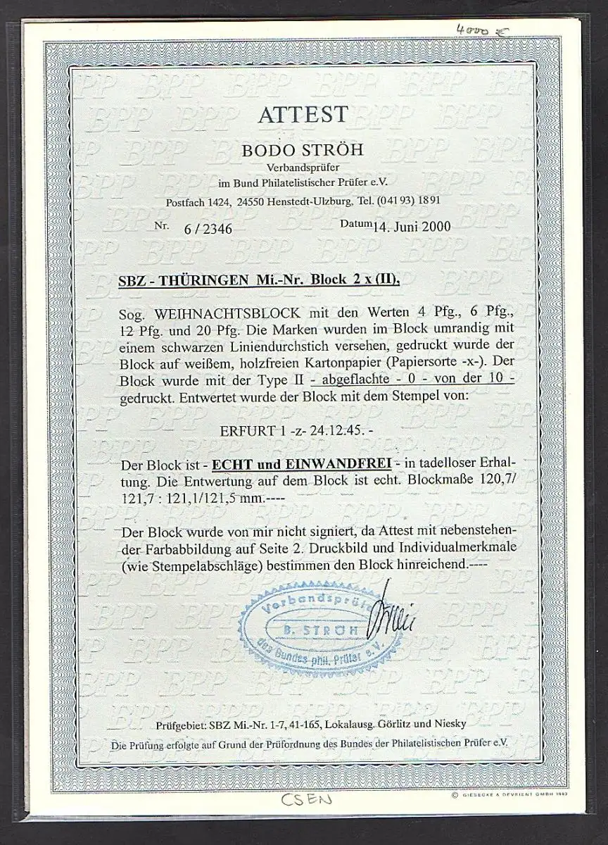 SBZ- Thüringen., Mi.-Nr. Block 2 x (II), gestempelt, FA. StröhBPP.