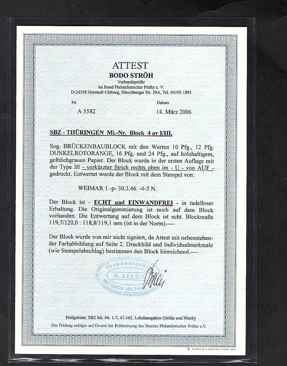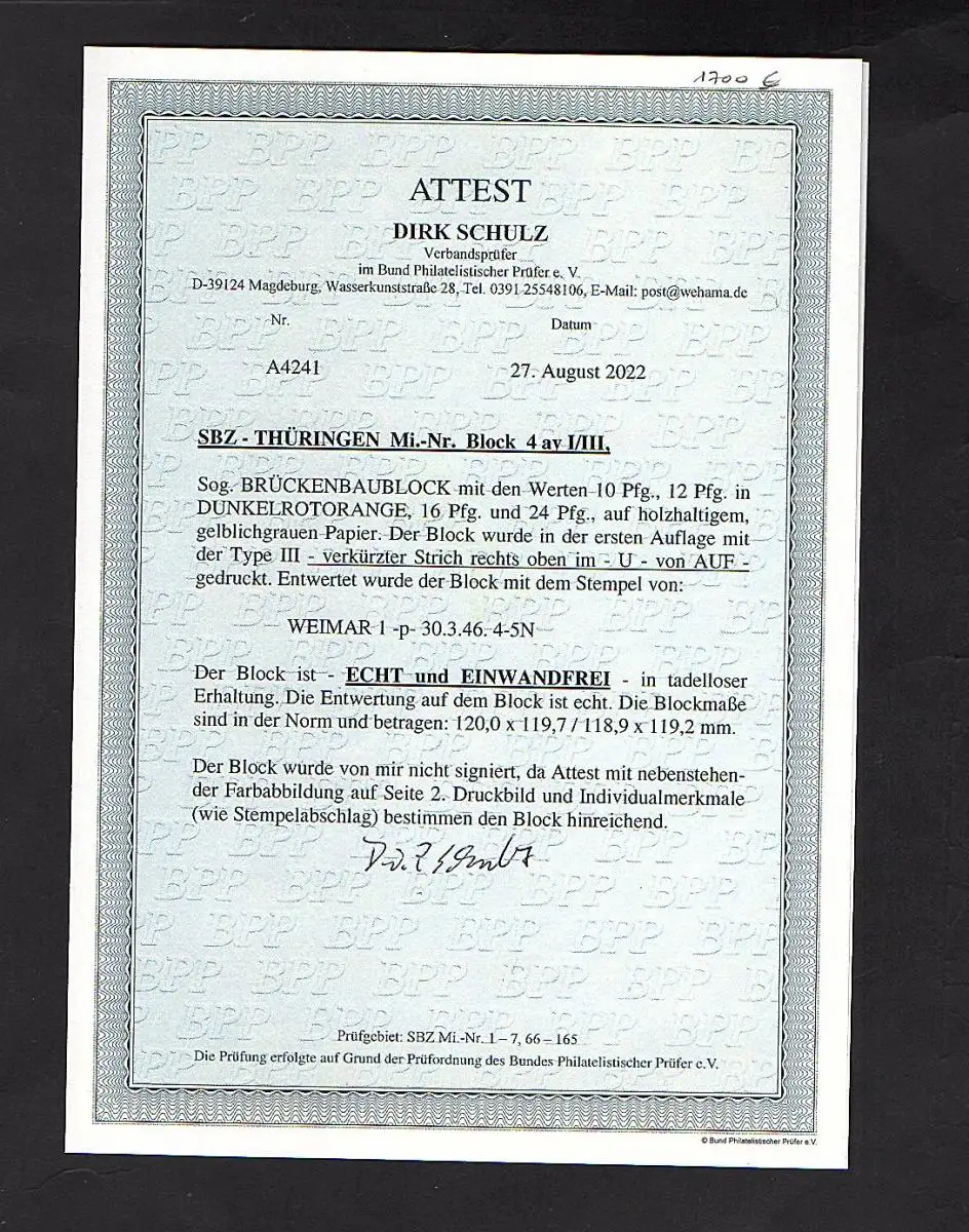 SBZ, Thüringen., Mi.-Nr. Block 4 ay, gestempelt, FA`s. Schulz/StröhBPP.