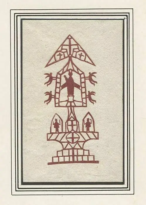 Bemerkungen: Filigran gearbeiteter, altarartig aufgebauter Scherenschnitt.