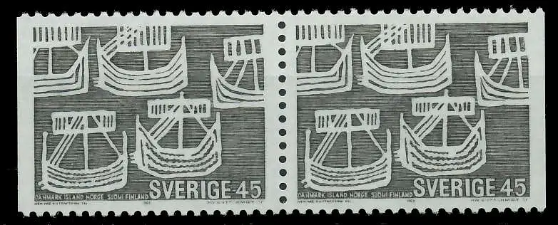 45 Ö Wert aus der Gemeinschaftsausgabe Skandinavien - 100 Jahre Zusammenarbeit der Postverwaltungen - links geschnitten und rechts geschnitten waagerechtes Paar