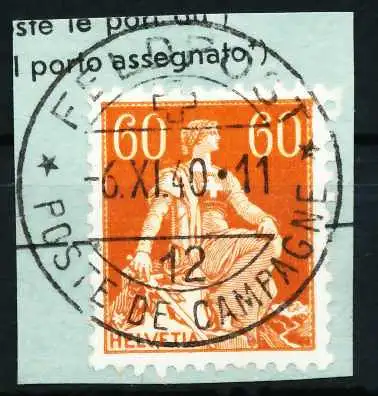 60 C Wert aus der Freimarkenausgabe "Sitzende Helvetia", Feldpost - Stempel