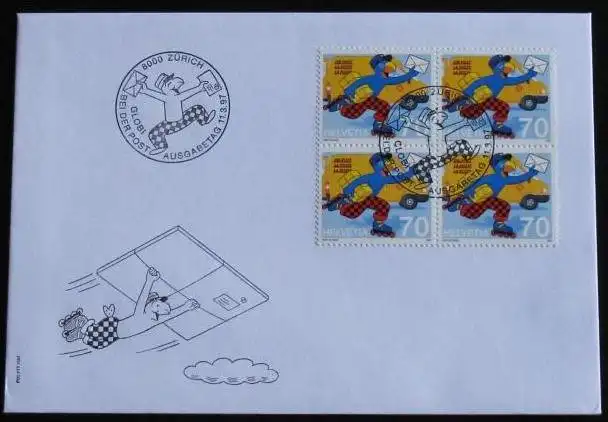 SCHWEIZ 1997 Mi-Nr. 1610 Viererblock FDC