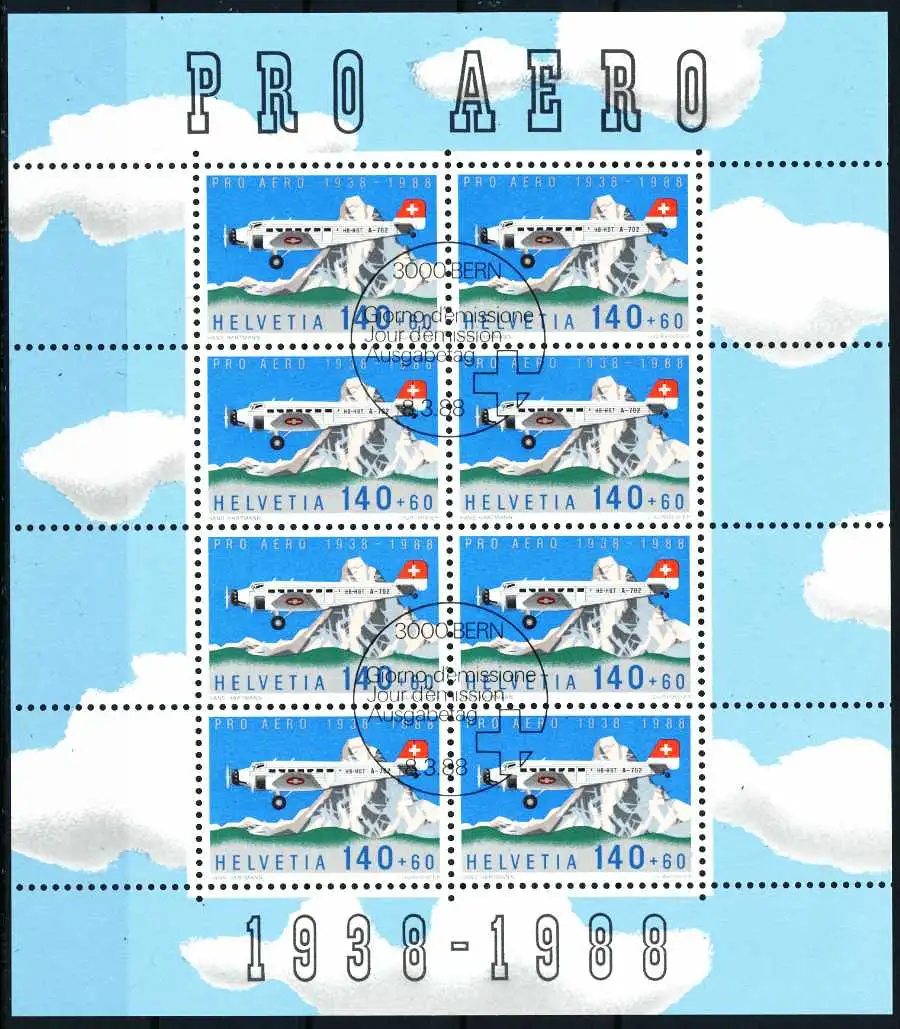 140 + 60 Rp Wert kpl. Kleinbogen 50 Jahre Pro Aero, mit ESST