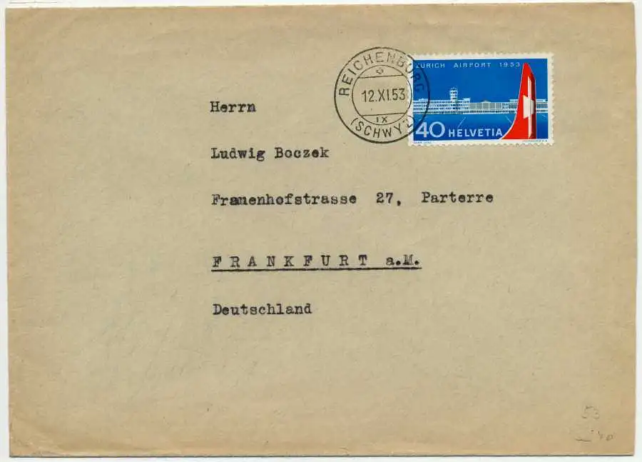 40 C Wert Flugpostausgabe von 1953 Einweihung des Flughafens Kloten