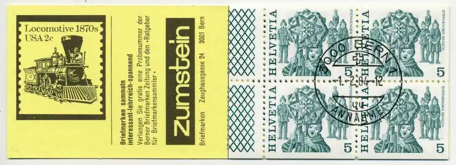 Markenheftchen MH 78c, Deckel gelb, Volksbräuche 1984, mit den Heftchenblättern HB145, HB146, HB147, HB148, HB149, USA Lokomotive (MichelNr.: )
