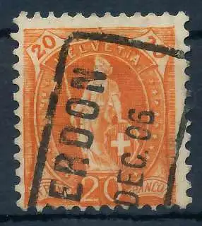 20 C Wert aus der Ausgabe stehende Helvatia von 1905-1908 mit Wasserzeichen Kreuz in der Zähnung C (K11 1/2 : 11)