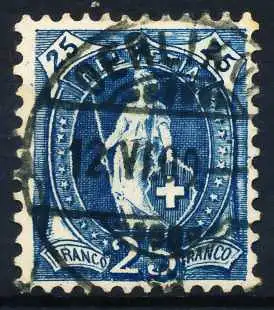 25 C Wert aus der Ausgabe stehende Helvatia von 1899 mit Kontrollzeichen 1Y in der Zähnung K 11 1/2 / 11