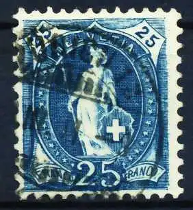 25 C Wert aus der Ausgabe stehende Helvatia von 1899 mit Kontrollzeichen 1Y in der Zähnung K 11 1/2 / 11