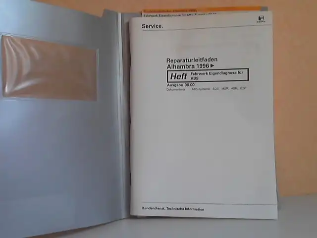 Reparaturleitfaden Seat Alhambra 1996: Fahrwerk Eigendiagnose für ABS - Dokumentierte ABS-Systeme: EDS, MSR, ASR, ESP Kundendienst. Technische Information
