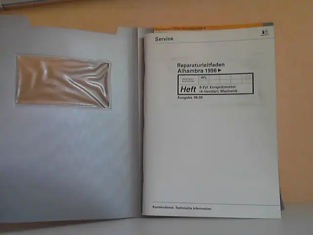 SEAT; Reparaturleitfaden Alhambra 1996: Motorkennbuchstaben AYL; 6-Zyl. Einspritzmotoi (4-Ventiler), Mechanik; Technische Information; Technische Daten; Motor aus- und einbauen; Kurbeltrieb; Zylinderkopf; Ventiltrieb; Schmierung; Kühlung; Kraftstoffversorgung; Abgasanlage