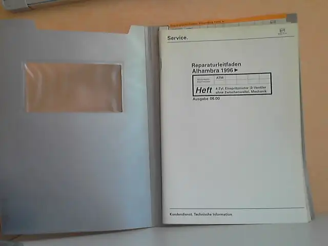 SEAT; Reparaturleitfaden Alhambra 1996: ATM, 4-Zyl. Einspritzmotor (2-Ventiler 1 ohne Zwischenwelle); Mechanik; Technische Information; Technische Daten; Motor aus- und einbauen; Kurbeltrieb; Zylinderkopf; Ventiltrieb; Schmierung; Kühlung; Kraftstoffversorgung; Abgasanlage
