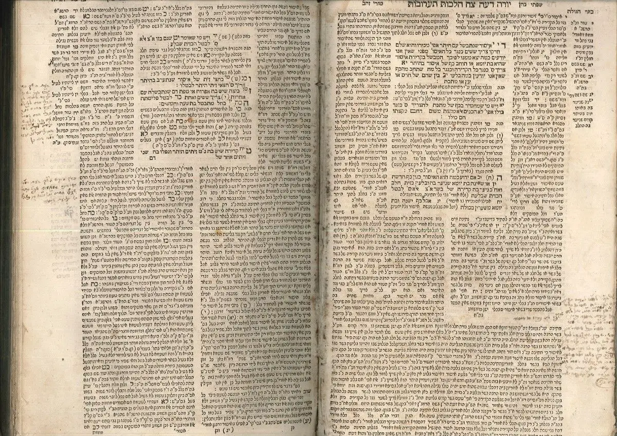 Bemerkungen: Das Werk enthält mehrere Kapitel, die die jüdischen Gesetze (Halacha) aus mehreren Quellen und Epochen kommentieren und interpretieren. Die Ordnung der Texte auf jeder Seite erinnern an die Struktur des Talmuds. Oben, in der Mitte jeder Seite steht ein Text in hebräischer Schrift und um diese Kolumne herum, in Rashi Schrift, drei Kolonnen der Kommentare: ???? ????, ???? ???, ???? ?????. Der illustr. Titel zeigt Moses und Aaron, eine Menorah, die Harfe Davids, Abraham und Isaak u. a. biblische Szenen.