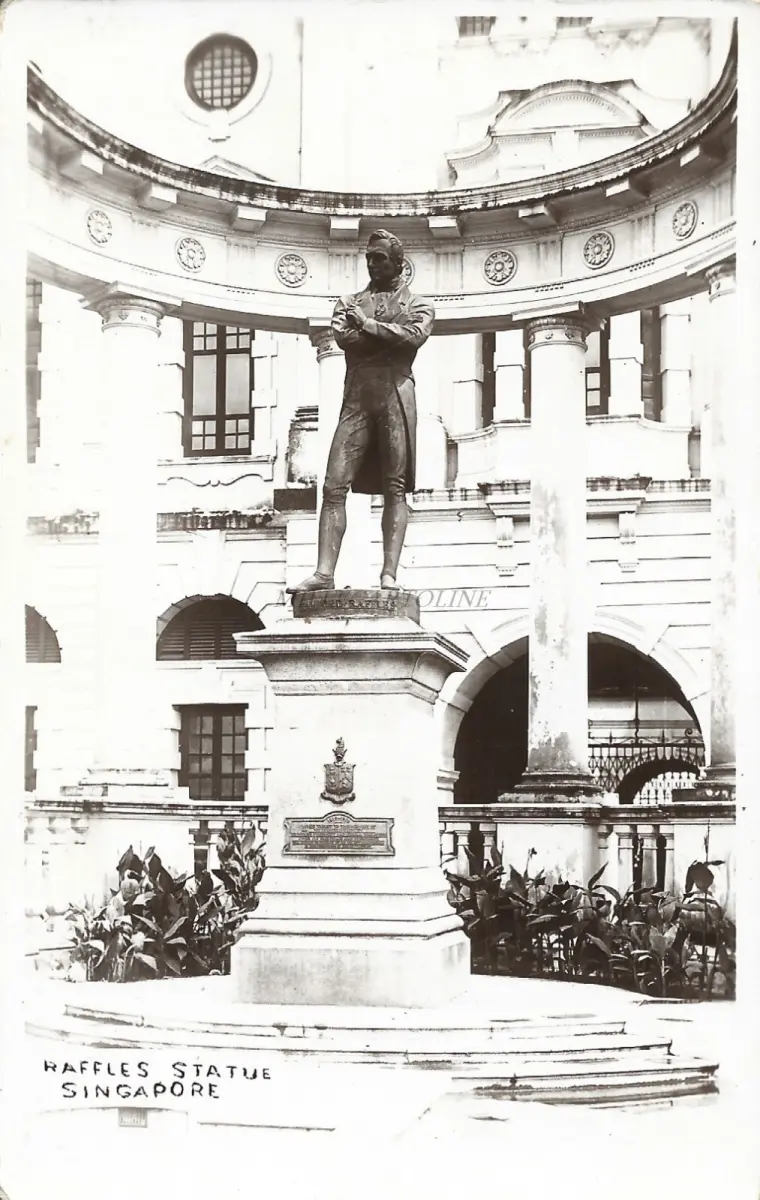 SINGAPUR - Raffles Statue - Echtfoto Postkarte