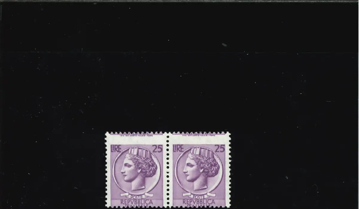 MNH - Vollgummi - SIRACUSANA 25 L. PAAR MIT STARK VERSCHOBENER VERZAHNUNG AUS BÜTTENPAPIER - Kat. euro 75 Cod. ITAV_0149