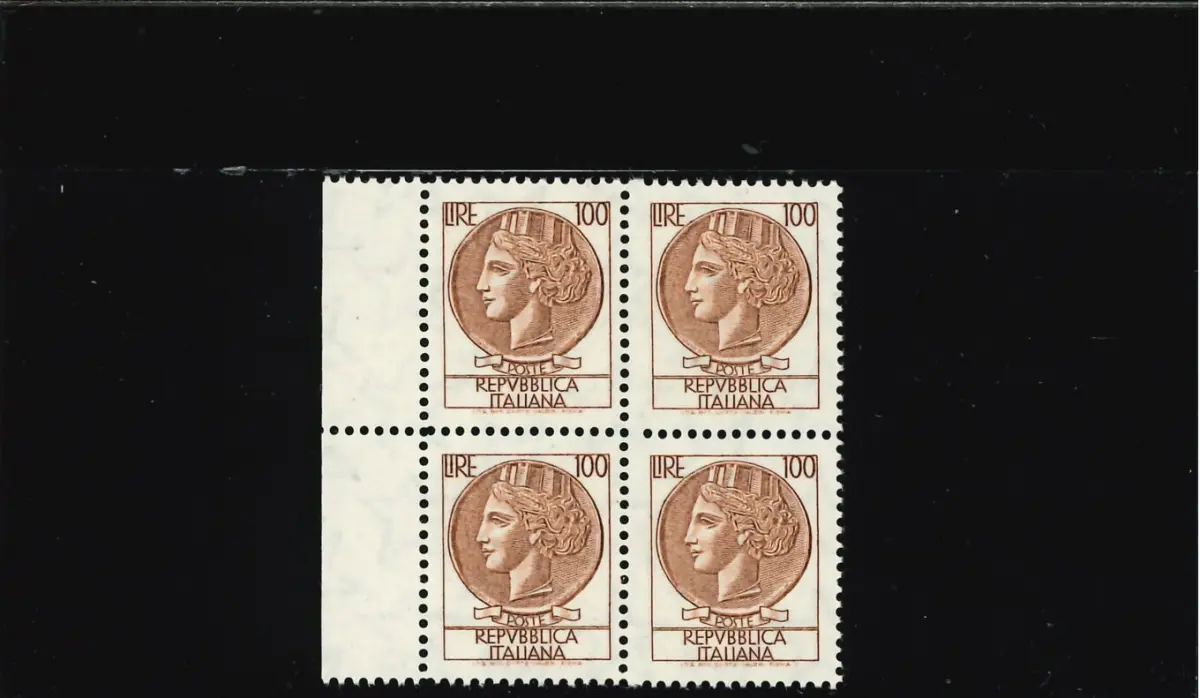 MNH - Vollgummi - SIRACUSANA VINYLICA FL 100 L. QUARTINA CON SALTO DI ZAHN Cod. ITAV_0184