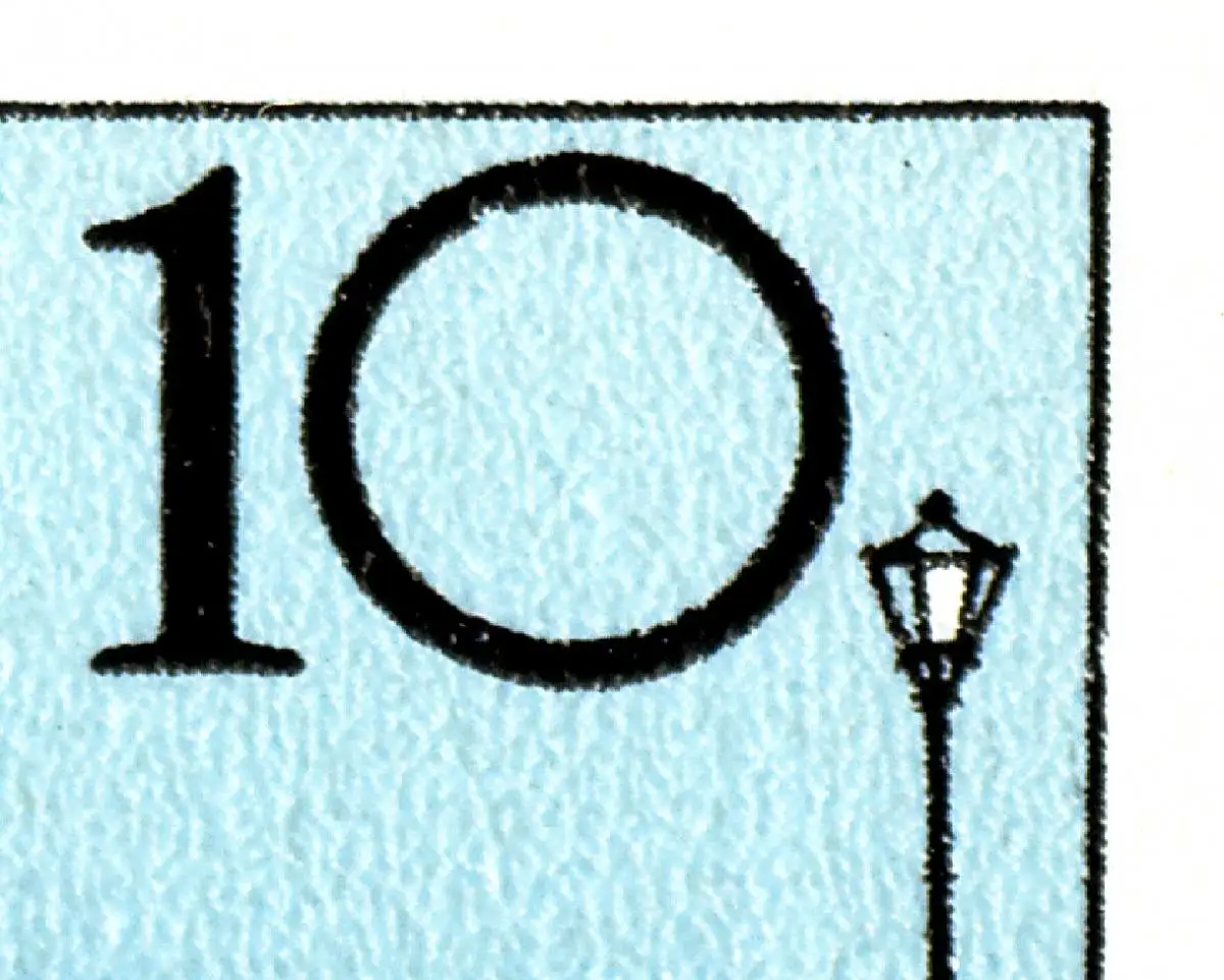 Plattenfehler: Kerbe links oben in der Null und Kerbe im Bildrand neben rechter Lampe