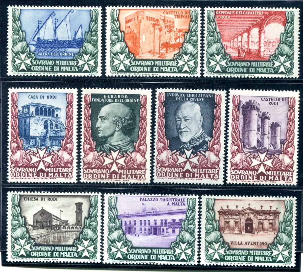 SMOM - Serie von 10 Werten, die vom italienischen Polygraphiker Vollgummi hergestellt wurden - SMOM - Serie von 10 Werten, die 1950 vom Istituto Poligrafico di Stato hergestellt wurden und von der Regierung des Malteserordens in Auftrag gegeben wurden, um die Krankenhausdienstleistungen und den ihm zur Verfügung stehenden Reichtum zu fördern - 1975 wurden die Bestände geborgen und mit Kornwert überdruckt, um die Ausgabe einer Reihe von Steuermarken zu realisieren - (Siehe Kat. Manelli Nr. 81/90) - Cert. Manelli Cod. 1075/13