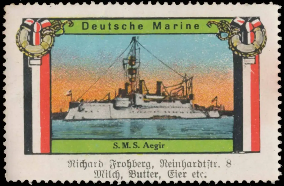 Serie:Deutsche Marine, Reinhardtstraße 8, Milch, Butter, Eier etc., Größe/Zustand: 4x6 , leicht fleckig, Original alte Reklamemarke die seinerzeit für die Werbung benutzt wurde