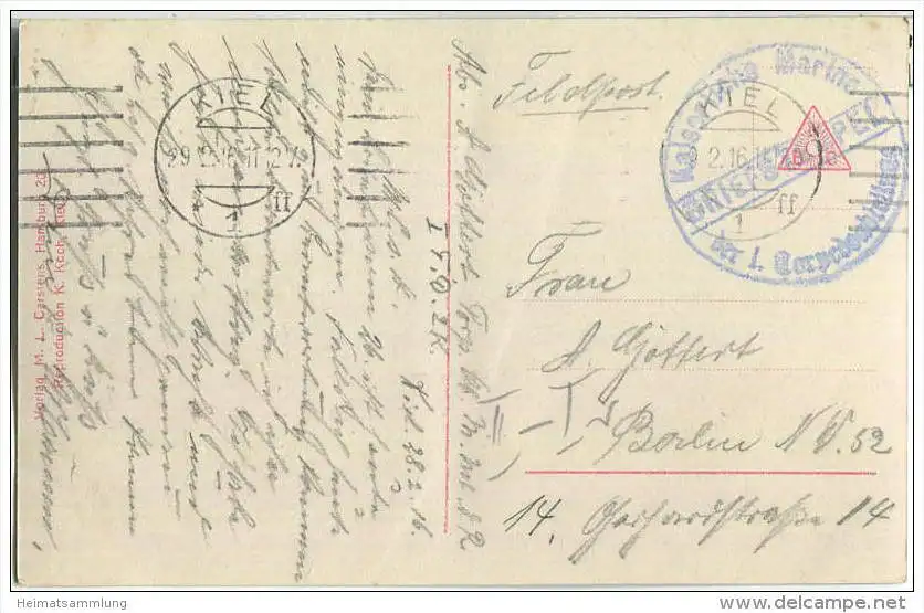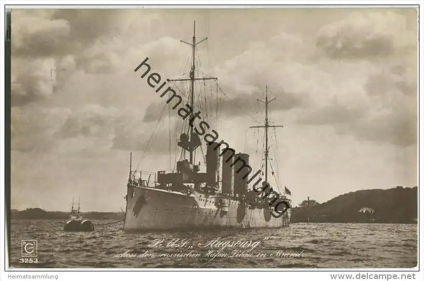 S.M.S. Augsburg - Foto-AK - Briefstempel Kaiserliche Marine I. Torpedoabteilung - Verlag M. L. Carstens Hamburg (G37399) gel. 1916