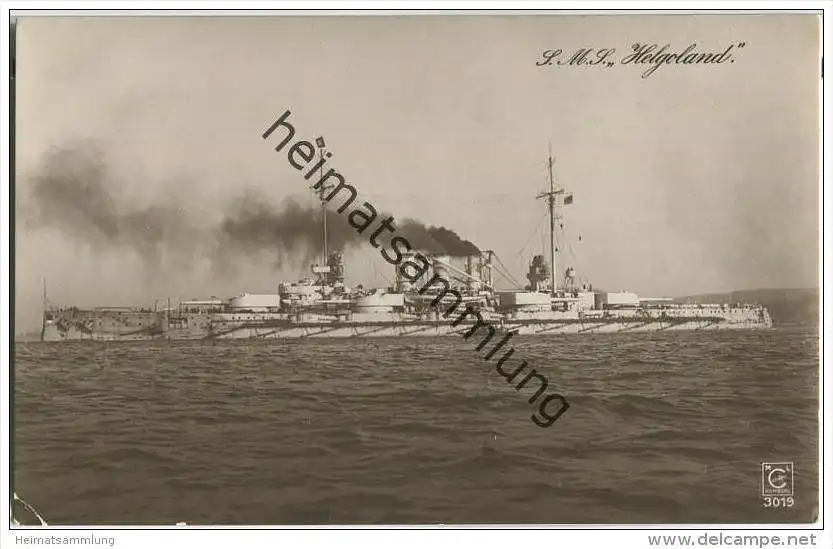 S.M.S. Helgoland - Foto-AK - Verlag M. L. Carstens Hamburg - Ecke unten links bestossen (G37389) gel. 1915
